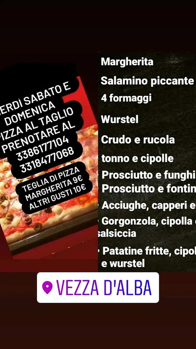 Welcome to Bar Sorriso, a charming cafe nestled in the picturesque setting of Vezza d'Alba, Italy. This delightful eatery offers a varied menu that caters to all tastes, featuring a selection of pizzas, focacce, panini, and salads, all at remarkably affordable prices.